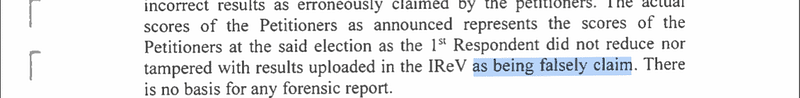 Some sections read as amusingly Trump-like,  such as the insistence that “ 1st petitioner [a reference to Peter Obi] is not a popular candidate that could have won and did not in fact win… He narrowly escaped being defeated in his own polling unit, unlike the 2nd respondent [a reference to Tinubu], who not only convincingly won in his polling unit, but overwhelmingly won the election across the whole country” (page 75, para 117).